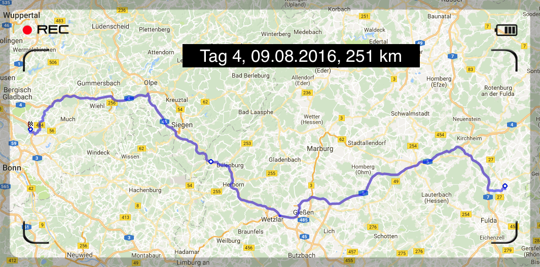 Nach einer sehr erholsamen Nacht und einem leckeren Frühstück startete ich in die letzte Etappe. Aufgrund der Wettervorhersage 🌧 wählte ich für die letzte Etappe die Autobahn und somit den schnellsten Weg. Auf der Strecke musste ich eine längere Pause einlegen, um eine Regenfront durchziehen zu lassen. Am Ende kam ich dann gegen Mittag und vollkommen trocken wieder wohlbehalten bei meinen Liebsten in Altenrath an.